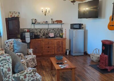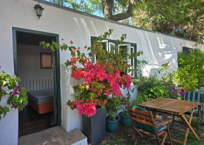 A generous studio with a terrace, fireplace and well-equipped kitchen. Textured furnishings add warmth, while garden views and outdoor dining make it feel like your own little cottage.
